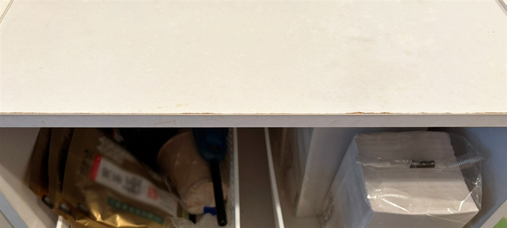 まずは、社内の給湯室にあるシンクに貼ってみます!